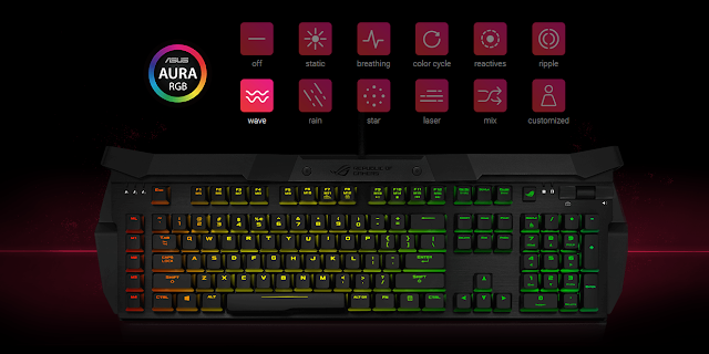 Produk Asus ROG yang lainya yaitu Keyboard Asus ROG. Keyboard yang dihasilkan oleh Asus ROG tentunya memiliki kualitas dan desain yang bagus. Selain itu Keyboard Asus ROG juga tak kalah dengan keyboard buatan Razer ataupun SteelSeries. Bahkan, jika dilihat dari keunggulan dan fiturnya, Keyboard Asus ROG lebih baik.
